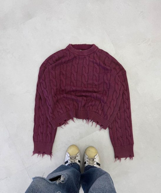 Be the first to review “CABLE KNIT DISTRESSED SWEATER” Cancel reply