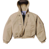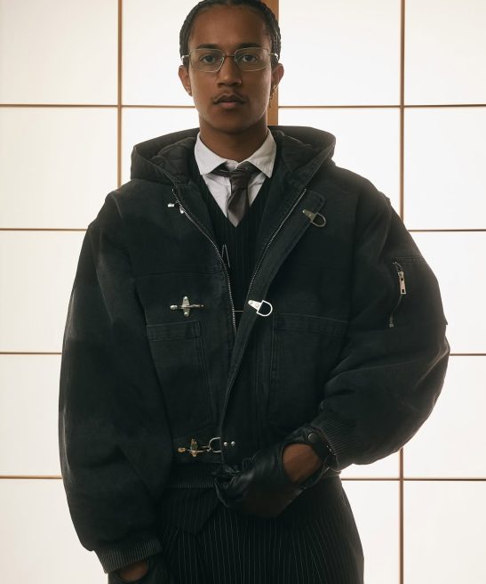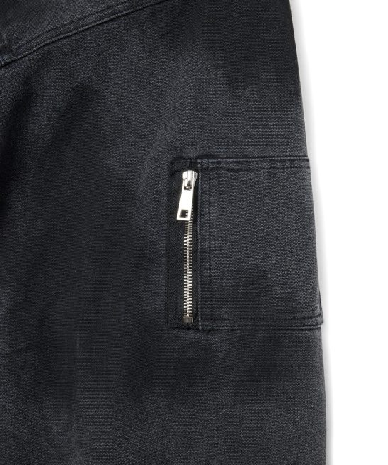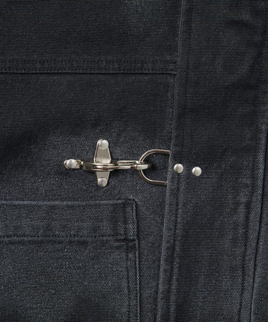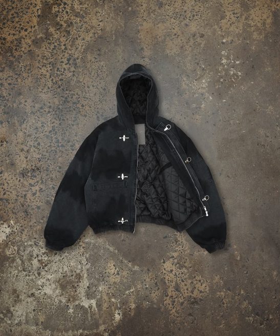 The 15oz Canvas Clasp Bomber Jacket is crafted from heavy-weight cotton canvas and features a hand-dyed pattern. making each piece uniquely textured and one-of-a-kind. Filled with cotton down and lined with quilted nylon. it offers warmth and comfort. while the oversized cropped fit and heavy-duty metal clasp closure add a modern urban edge. Functional details like the double zip. open-end hip pockets. and bomber-style arm zipper blend utility with style. creating a bold and layered statement piece for the urban explorer who values individuality.