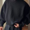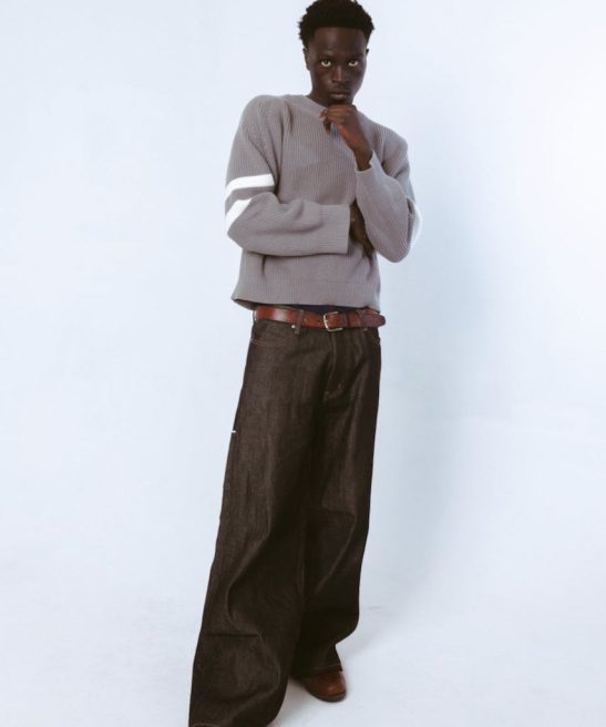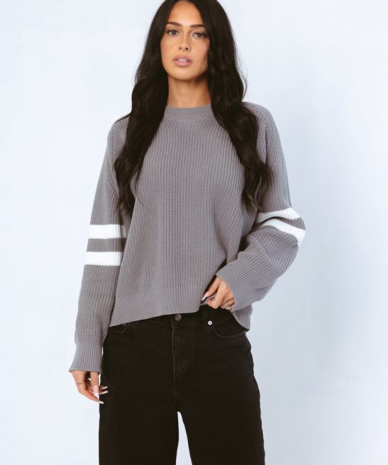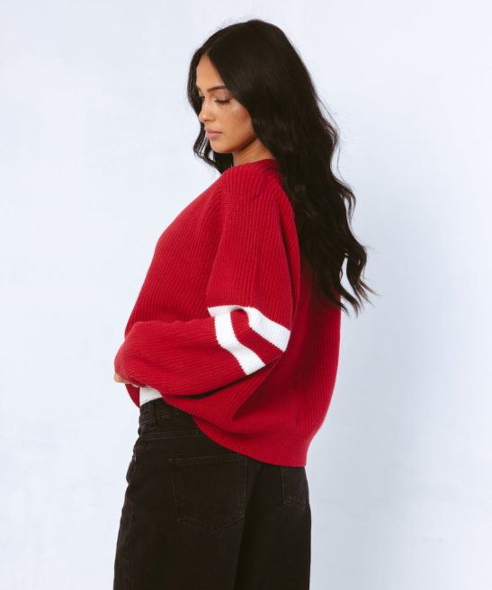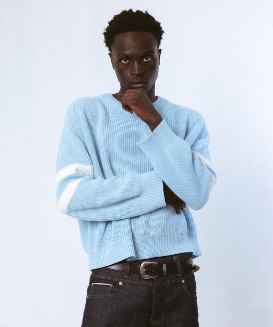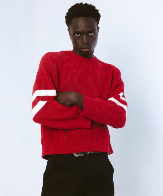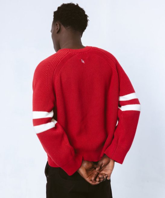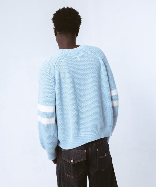 Crafted from a premium. heavyweight blend for superior warmth and structure. The defined ribbed texture pairs with retro-inspired varsity sleeve stripes to create a classic athletic aesthetic. Designed with a relaxed drop-shoulder fit. this piece offers an effortless drape perfect for modern layering.